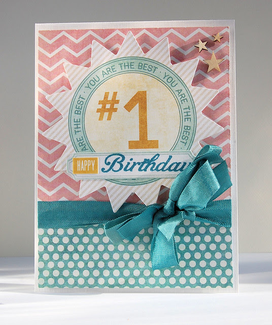 I am always in need of cards for birthdays and the die cut #1 seemed to be a perfect fit when coupled with the tiny word sticker and label. I think this one is quite girly so I tried a more 'unisex' version here..